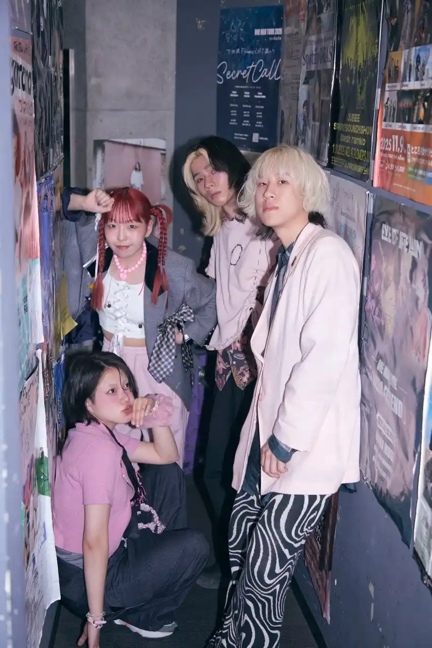 | とうめい天国は、2023年初夏に結成した4ピースバンド。メンバーは森口楽絃(Vo/Gt)、奏汰(Gt)、よし(Ba)、えだはるか(Ds)の4名。創造性の高いコード進行、心を掴むメロディー。と思いきや、歪みやノイズの効いたギタープレイに、叙情的なベースプレイと重厚なサウンド。パワフルなドラムはどこか古臭さもある、一筋縄ではいかない新世代の“New Color POP BAND”。 | ||||||||||