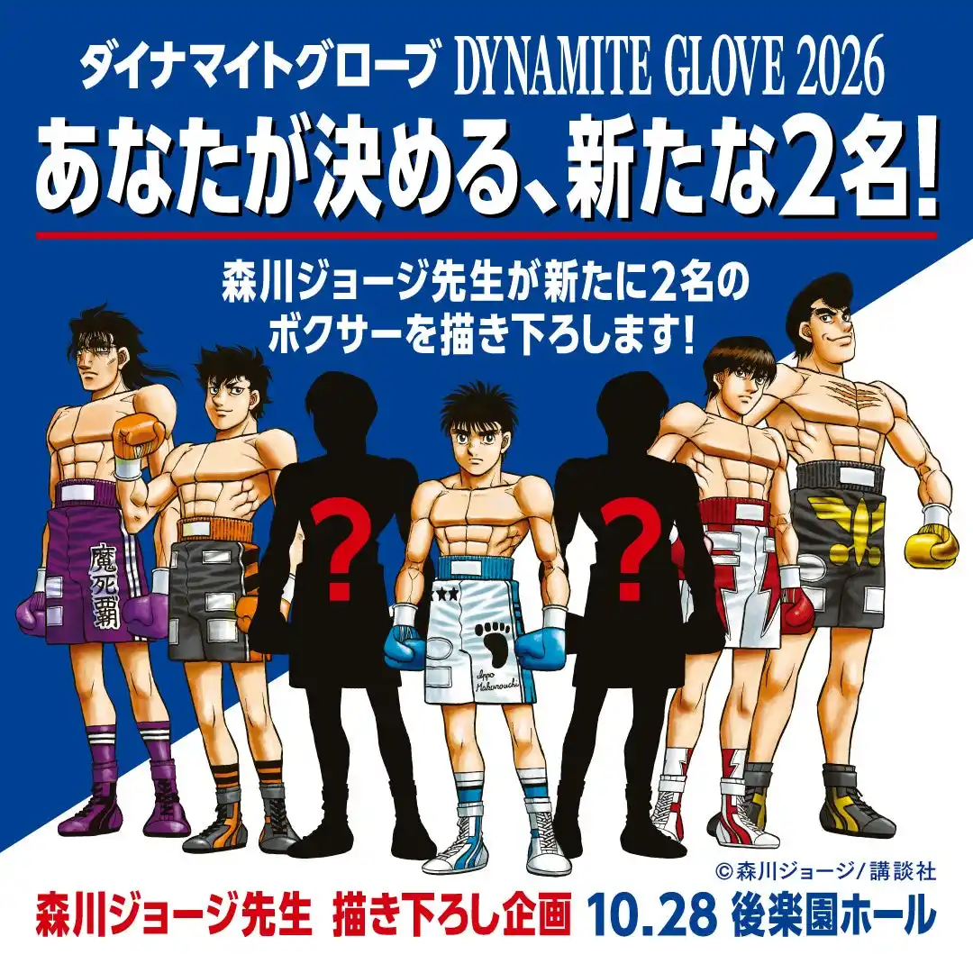 | まずは本大会の開催決定に伴い、ボクシング漫画の金字塔『はじめの一歩』の作者・森川ジョージ先生による「メインビジュアル追加キャラクター決定ファン投票」を、本日4月20日(月)より先行して開始いたします。 | ||||||||||||