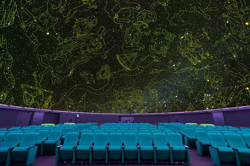 宇宙と天文をテーマにした体験型博物館で、5つのゾーンからなる展示室と、リアル8K映像を映し出すドームシアター(プラネタリウム)を備えています。 |