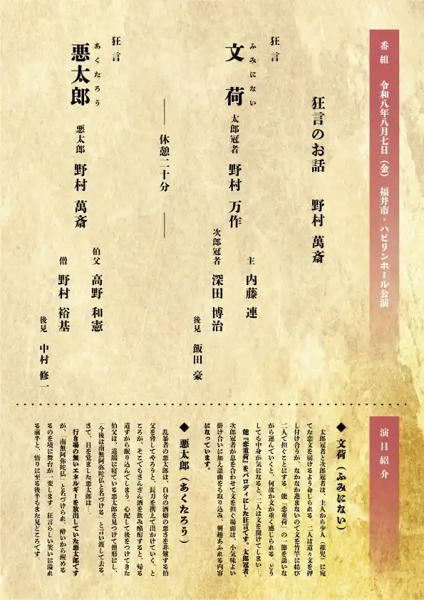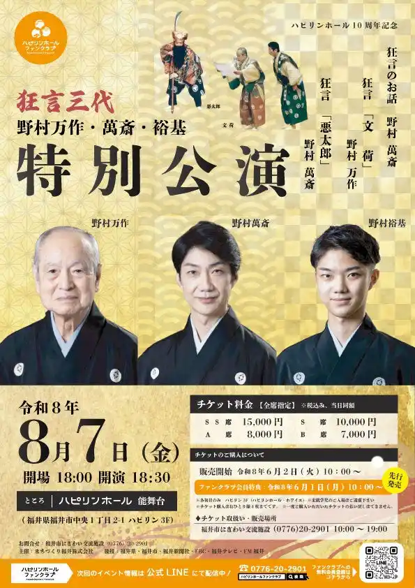 ハピリンホール10周年記念事業について(野村万作・萬斎・裕基・狂言三代特別公演)/まちづくり福井株式会社 |
