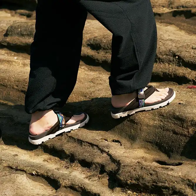 今回は、これまでのコラボとは違った鼻緒タイプのサンダルで、軽量性とクッション性を両立させたSHAKAの人気モデル「CAMP BAY PARA BF(キャンプベイパラBF)」をベースに、リゾートシーンでゆったりと過ごすのに最適なコラボサンダルを制作しました。 |