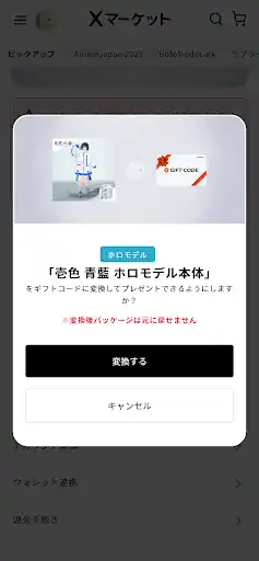 本機能は、「ホロモデル」「メイクアバター」「スペーシャルディスク」などの主要コンテンツを中心に利用可能です。購入済みのデジタルグッズを、ギフトコードとして知人・友人へプレゼントできる機能です。 |