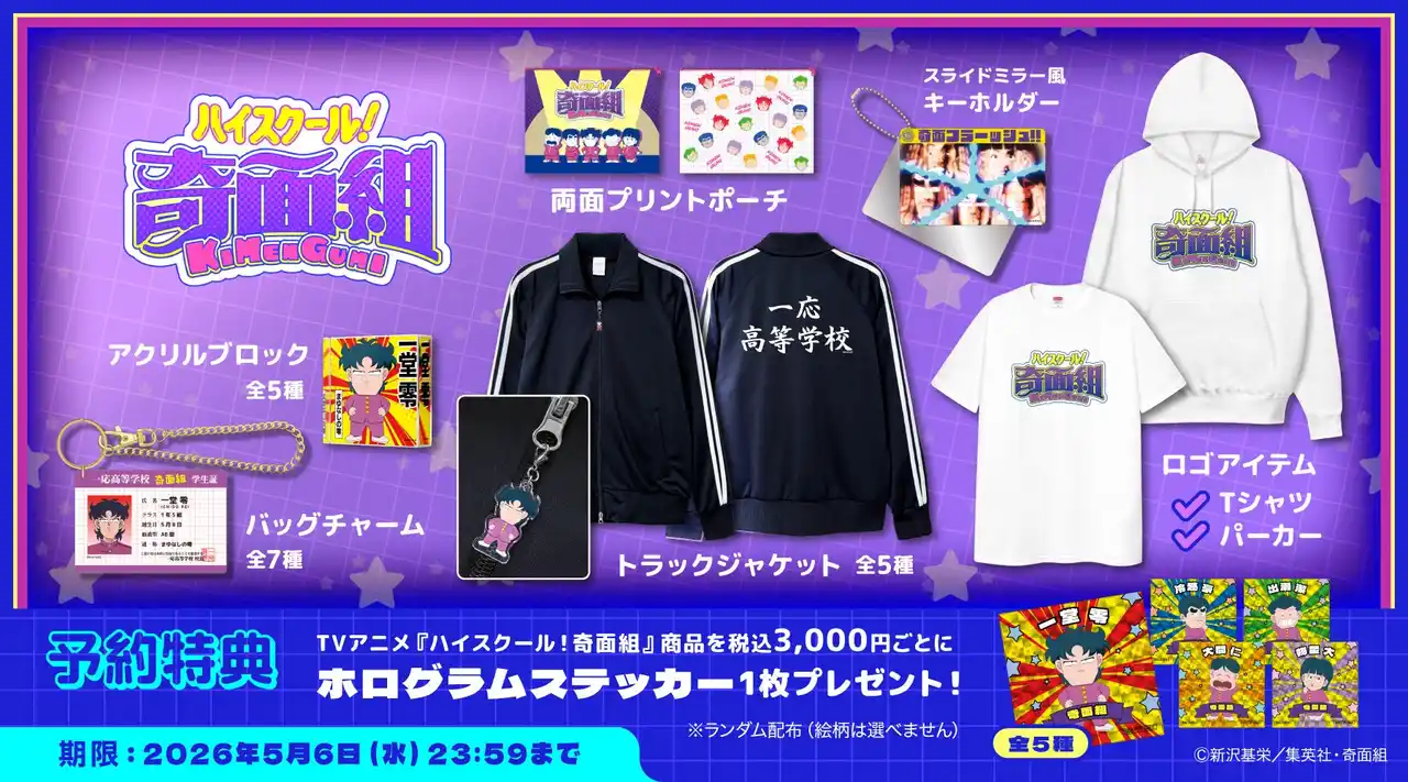 TVアニメ『ハイスクール!奇面組』商品を税込3,000円以上お買い上げごとに購入特典としてホロステッカーをランダムで1枚プレゼント! |