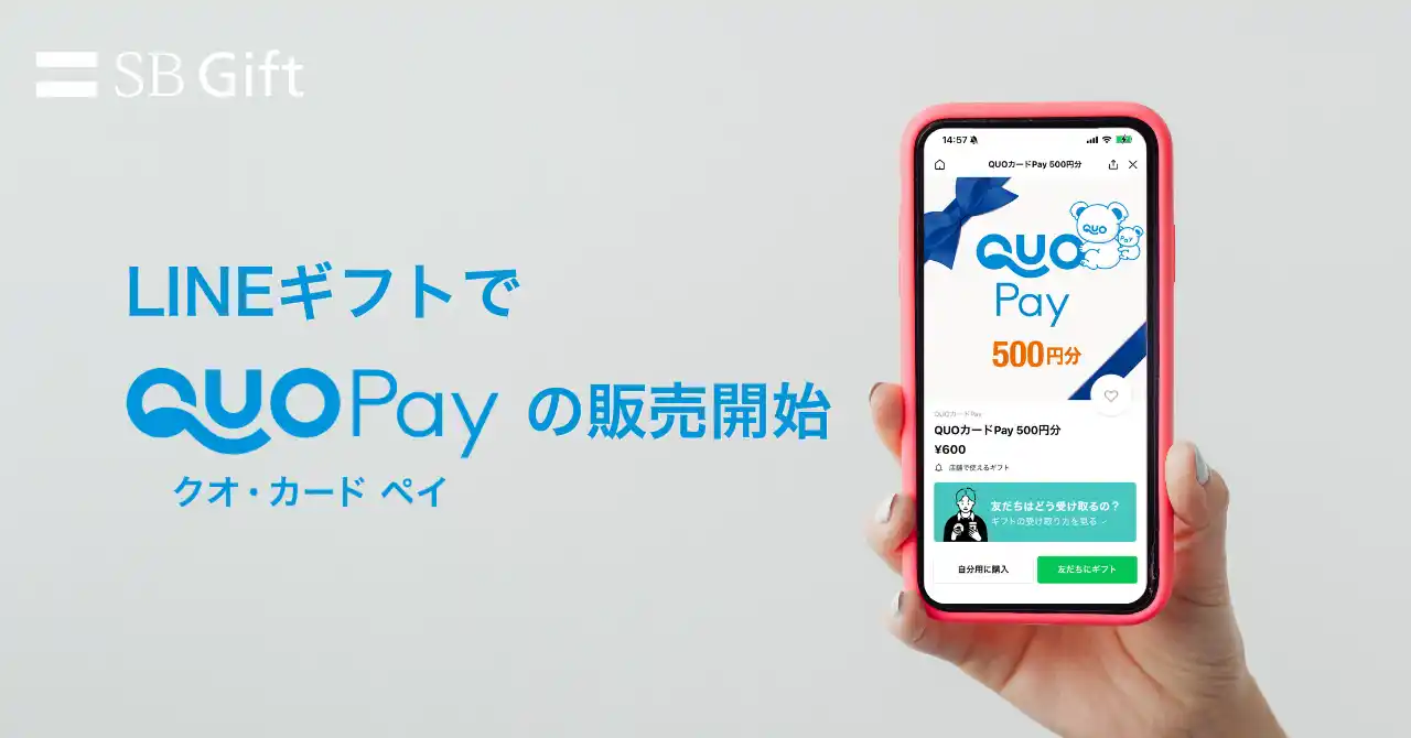 | SBギフト株式会社(本社:福岡県福岡市、代表取締役 大和 清隆)は、株式会社クオカード(本社:東京都中央区、代表取締役社長:近田 剛)が展開するスマートフォンで使えるデジタルギフト「QUOカードPay(クオ・カード ペイ)」を、2026年4月20日(月)よりLINEギフトにて販売開始いたします。 | ||||||||||||||||||