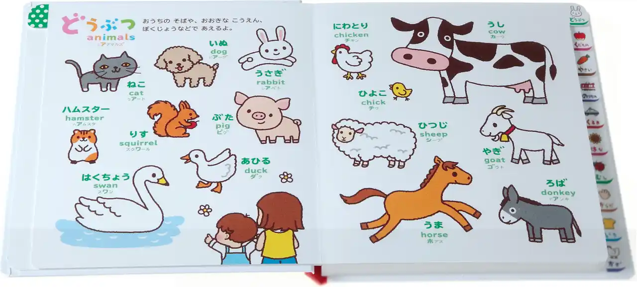 『0さい~4さい こどもずかん英語つき』は、動物、食べ物、乗り物など、こどもが興味を持ちやすいテーマごとに、絵と日本語・英語の言葉を掲載した人気絵本です。 |