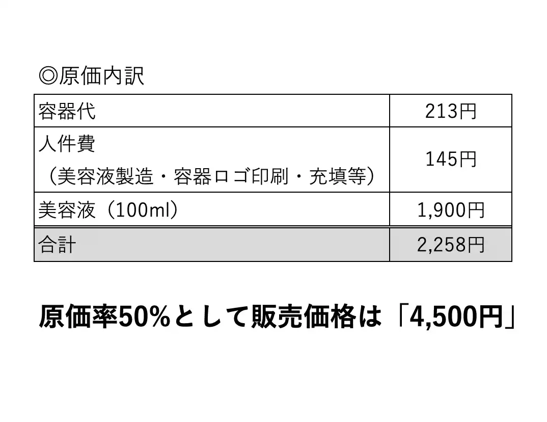 【100mlボトルの原価情報】 |
