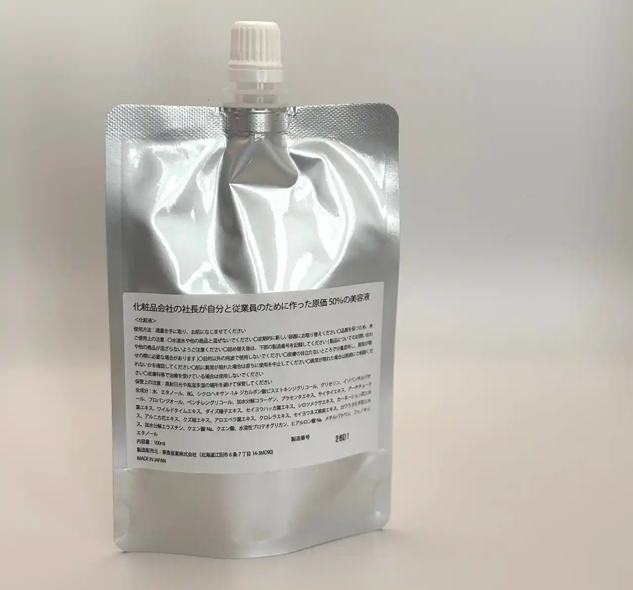 東香産業株式会社(本社:北海道江別市、代表取締役:田中 至)は、昨年、先行予約販売を実施した「化粧品会社の社長が自分と従業員のために作った原価率50%の美容液」を、2026年4月23日より公式通販サイトにて通常発売(定番商品化)いたします。 |