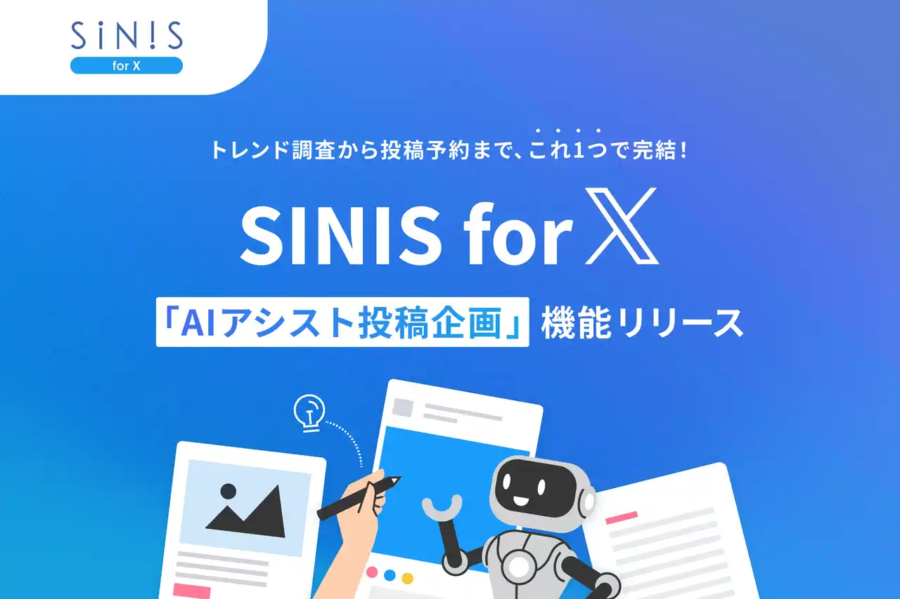 | 企業向けSNSマーケティング支援を中心としたビジネス展開をするテテマーチ株式会社(本社:目黒区、代表取締役:上田 大介)が運営するX分析・運用支援ツール「SINIS for X(サイニスフォーエックス)」は、X(旧Twitter)において、新機能「AIアシスト投稿企画」を2026年4月20日にリリースします。 | ||||