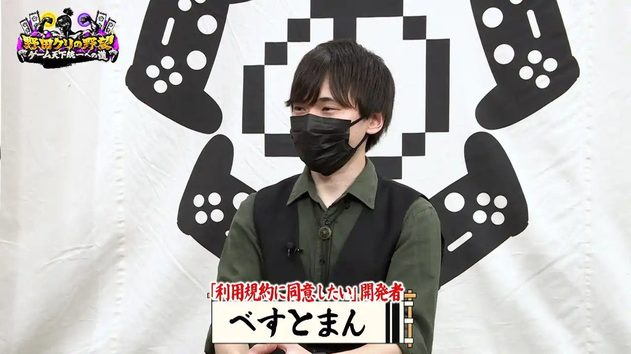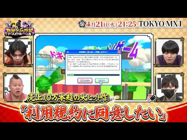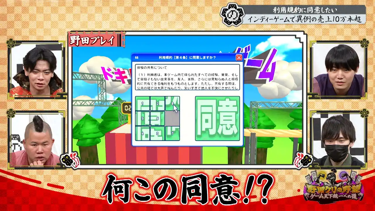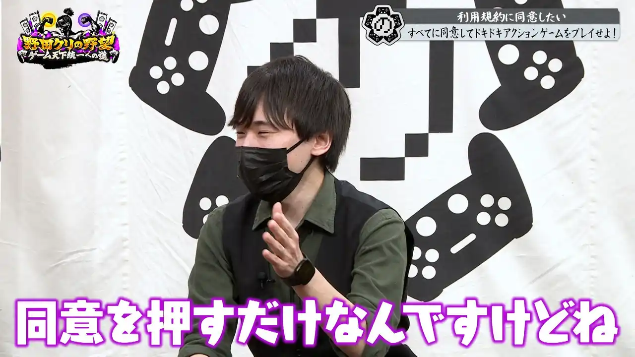今回は昨年末にリリースし大ヒットした超ストレスフル“同意アクション”「利用規約に同意したい」の開発者・べすとまんが登場!数多の配信者を絶叫&悶絶させた鬼畜ゲーを野田軍はクリアできるのか!? |