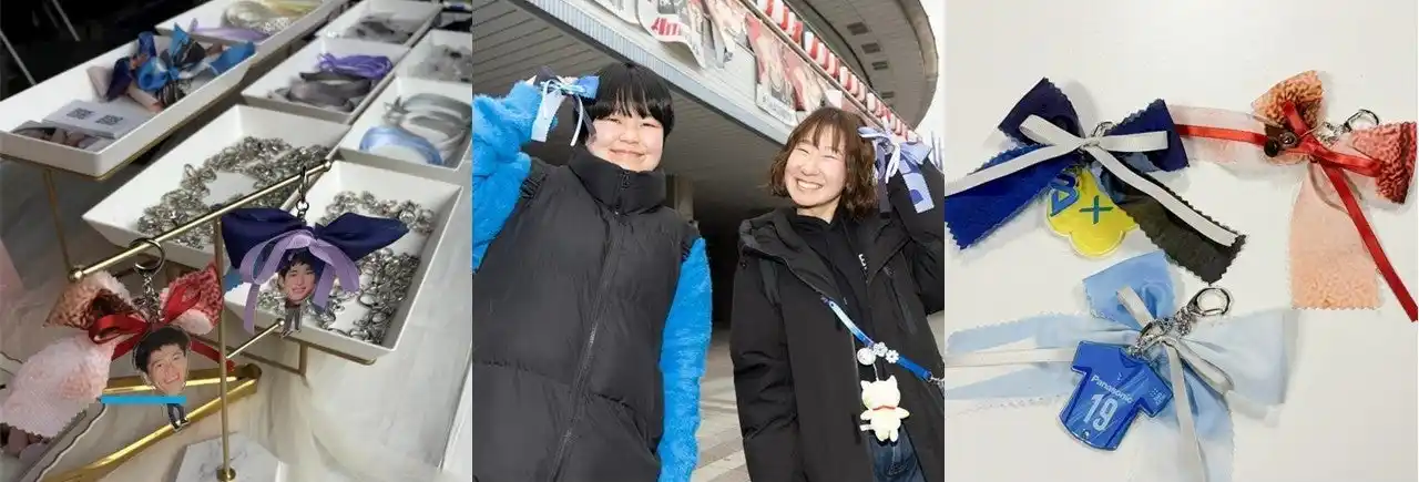 会場では、ガンバ大阪(J1リーグ)および大阪ブルテオン(SVリーグ)で使用したシャツ・場外装飾を素材に、ファッションブランド ecmile.(エクミール)監修のリボンチャームづくりを無料で体験いただけます。 |