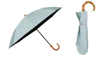 遮光率100%、UPF50+の日傘。留めひもが内側と外側の両方にあるため、長傘としても持ち運ぶことも、折り畳んでコンパクトに収納することも可能です。晴雨兼用のため、夏の不安定な天候にも安心して使えます。 |