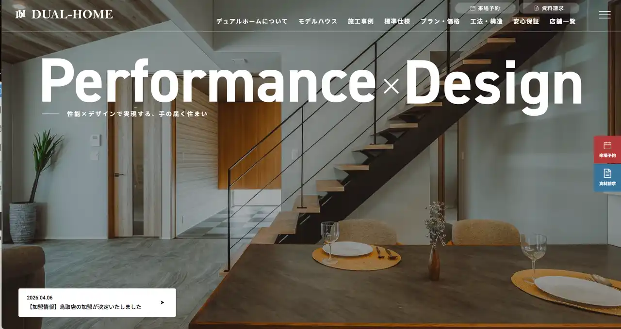 「デザイン×性能」をテーマに、北海道発注文住宅ブランドとして関東・関西・東北など10府県以上に展開するDUAL HOME(運営:株式会社アーキテックプランニング、本社:北海道札幌市)は、2026年4月、公式ホームページ(https://dualhome.jp)を全面リニューアルいたしました。 |