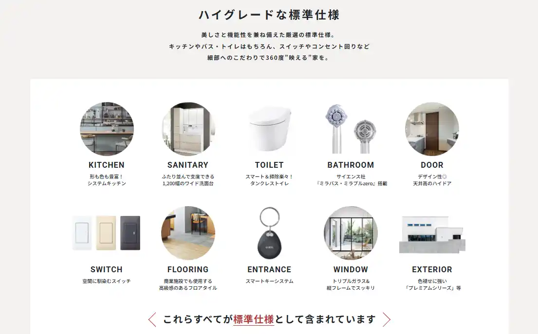 DUAL HOMEの特徴の一つであるハイグレードな標準仕様 |