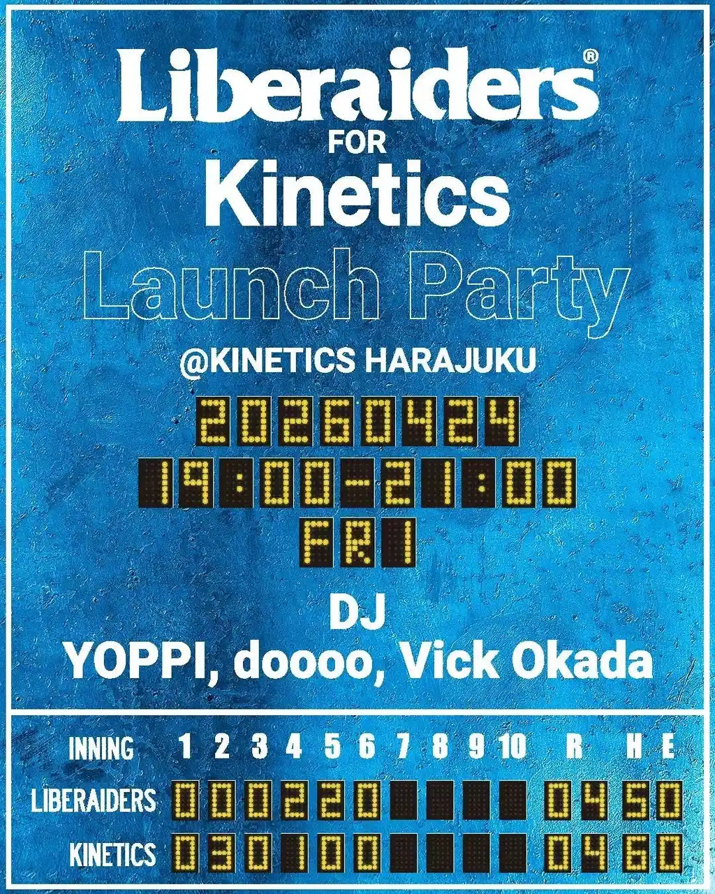 また、コレクションのリリースを記念し、発売当日にKinetics店舗にてローンチパーティーを開催。DJにはYOPPI、doooo、Vick Okadaを迎え、豪華景品が当たるビンゴストラックアウトなど、音と遊びが交差する空間を提供する。 |