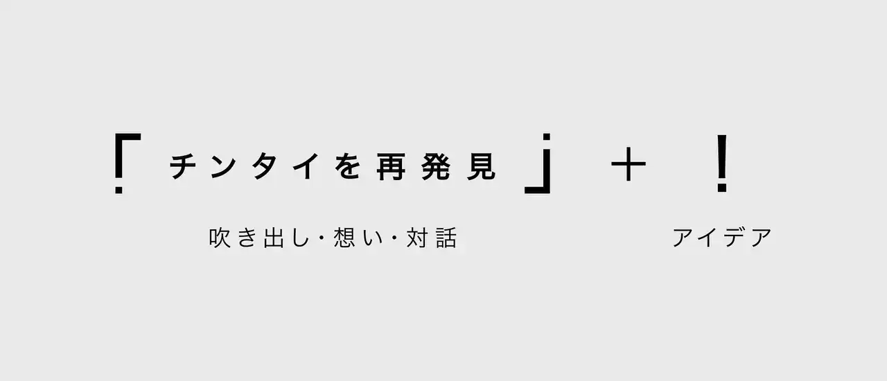 | 今回のロゴは、ちんたい研究会のフィロソフィーを象徴する「 」(かぎ括弧)と「!」(感嘆符)を組み合わせて構成しています。 | ||||