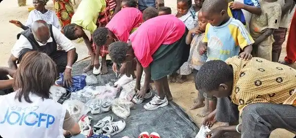 子どもたちの足を寄生虫病や破傷風から守っています。 |