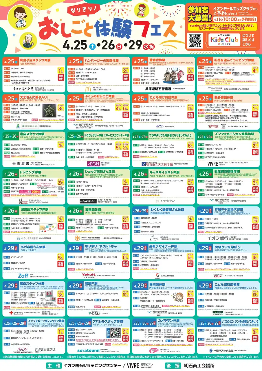 ◆参考リンク:なりきり!おしごと体験フェス│イオン明石ショッピングセンター 公式ホームページ