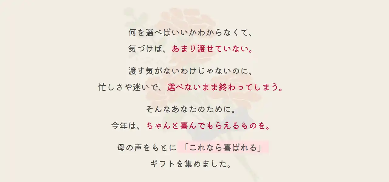 | 母の声から“選べる”、母の日ギフト | |||||||||