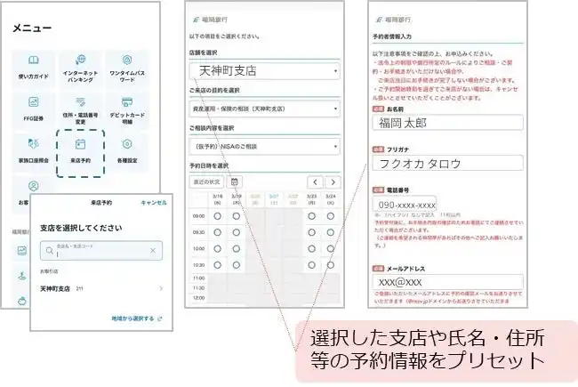 3.資産運用・保険に関する来店予約サービス導線 ※福岡銀行アプリのみ |