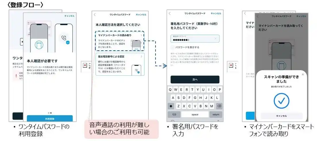 これまでOTP利用登録は届出電話番号からの発信による認証のみでしたが、JPKIの活用により、年間約40万人を超えるお客さま※に複数の認証手段を提供するとともに、音声通話のご利用が難しいお客さまへの新たな選択肢として、アクセシビリティと利便性向上を実現しました。※2025年度のOTP利用登録数(3行合計) |