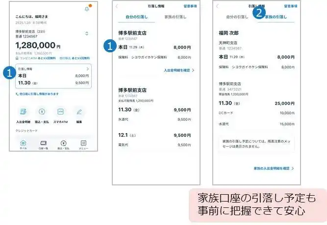 2.家族口座の引落し予定を表示 |