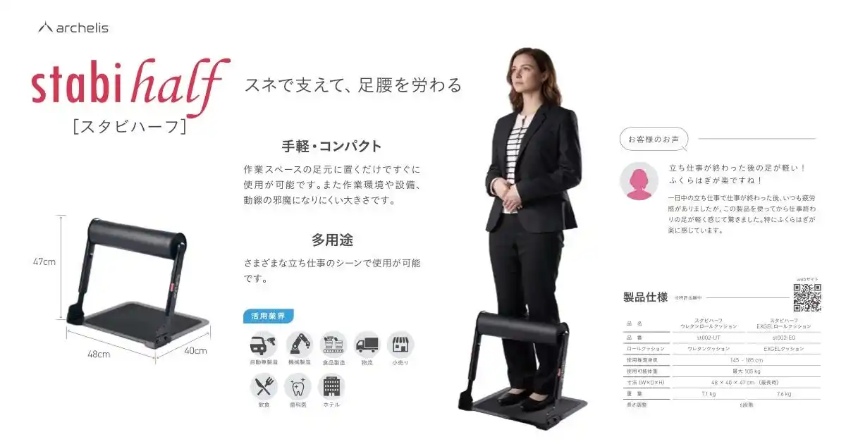 立ち仕事を支えるサポートデバイス「スタビハーフ」 |