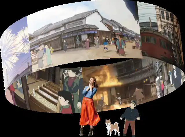 | 生駒時計店など現存する歴史的建物も物語の中に登場し、VR映像の中でまるで自分がその街角に立っているような不思議な感覚を味わえます。 | |||