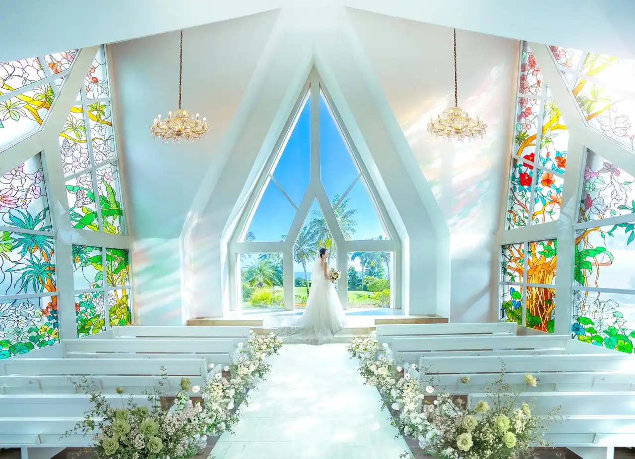 今回、「アラマンダ チャペル」は「静かに、満ちる。」をコンセプトにリニューアルします。チャペル内の装飾は、ウェディングロードとのつながりを大切にし、宮古島の植物が描かれたステンドグラスが一番美しく映えるよう「ホワイト×グリーン」を基調に生まれ変わります。宮古島リゾートウェディングの先駆けとして、17年にわたり多くの誓いと笑顔を見守ってきた本質はそのままに、時を重ねたこの場所の魅力を現代の感性で整えることで、自然・空間・感情が調和する「本質的な挙式価値」の提供を目指します。 |