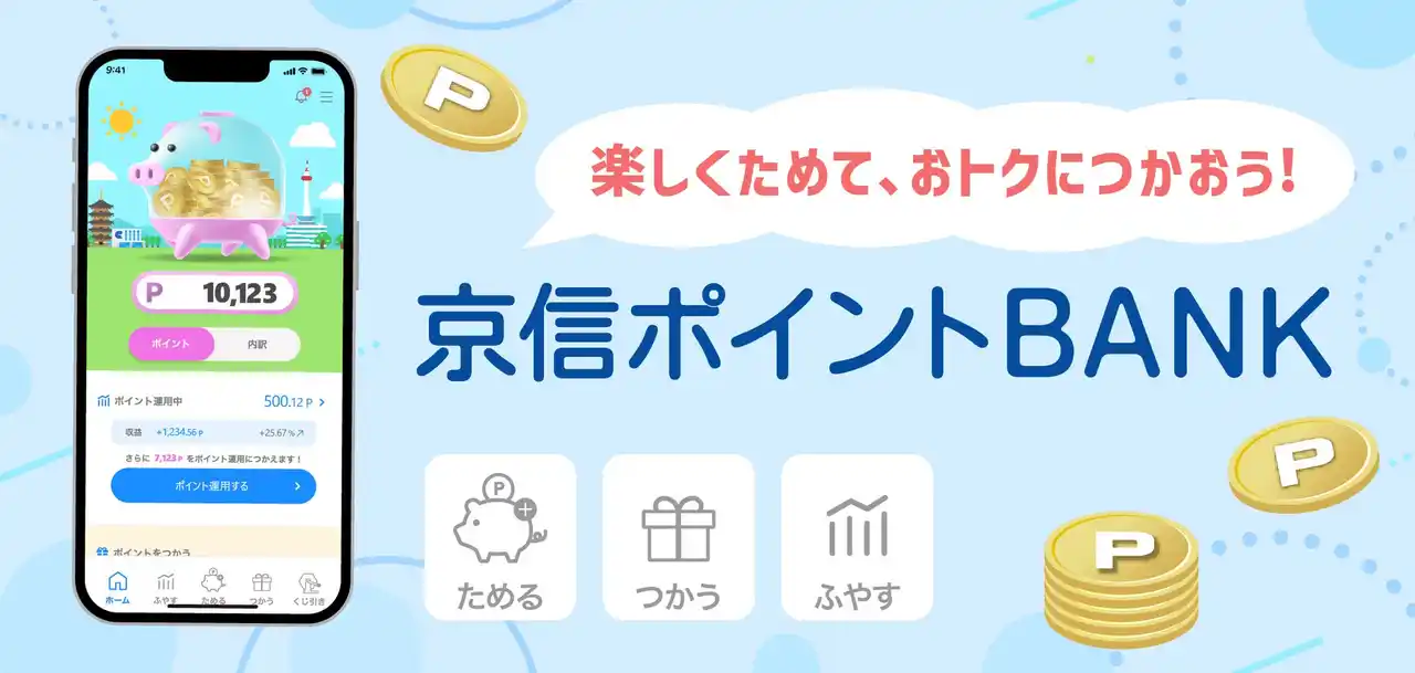 「京信ポイントBANK」は、当金庫のポイントを「ためる」「つかう」「ふやす」ことができるポイントアプリです。 |