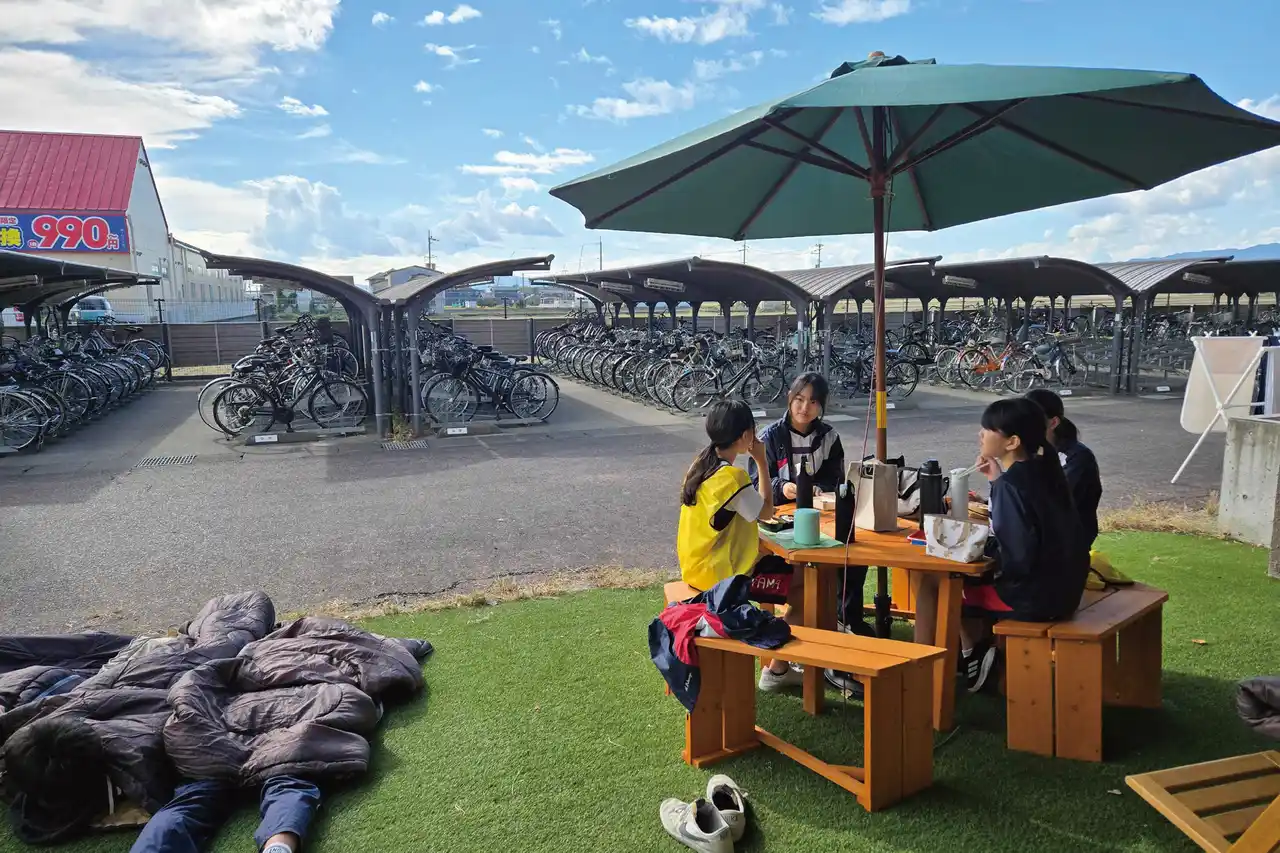 明確な理由がなくても好きなタイミングで利用できる、学校内のサードプレイスとも言うべきスペース「オルバ」を創設。さらに、保健室前の芝生にパラソルやベンチを置いた「アウトドア保健室」も展開されました。「大人からの『支援』として設計するのではなく、生徒たちがお互いに心地よい距離感を保てるような居場所を大切にしたいと考えました」と山村さんは言います。 |