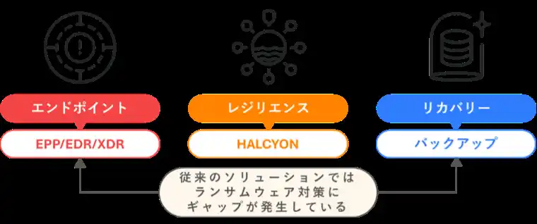 (図3: Halcyonが解決する従来のランサムウェア対策におけるギャップ) |