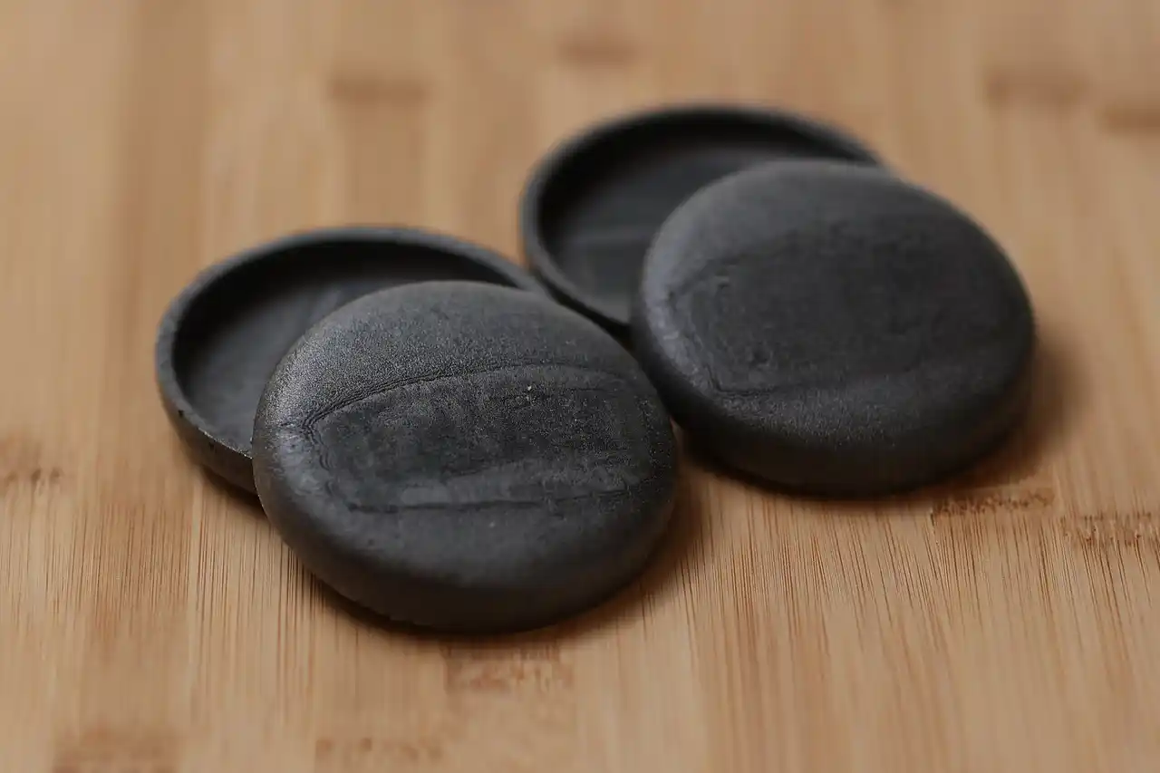| 黒い最中皮:石川県の伝統工芸「九谷焼」のような重厚な黒をイメージ。見た目のインパクトは絶大。 | |||