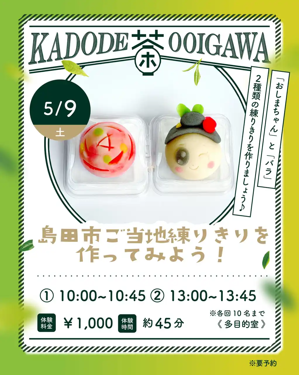 島田市の魅力がいっぱいつまったご当地練りきりをつくってみよう!作るのは、島田市のゆるキャラ「おしまちゃん」と、市の花である「バラ」の2種類。上手に作ることよりも「楽しむこと」を大切にしています。初めての方がほとんどなので、安心してご参加ください。 ■開催概要 |