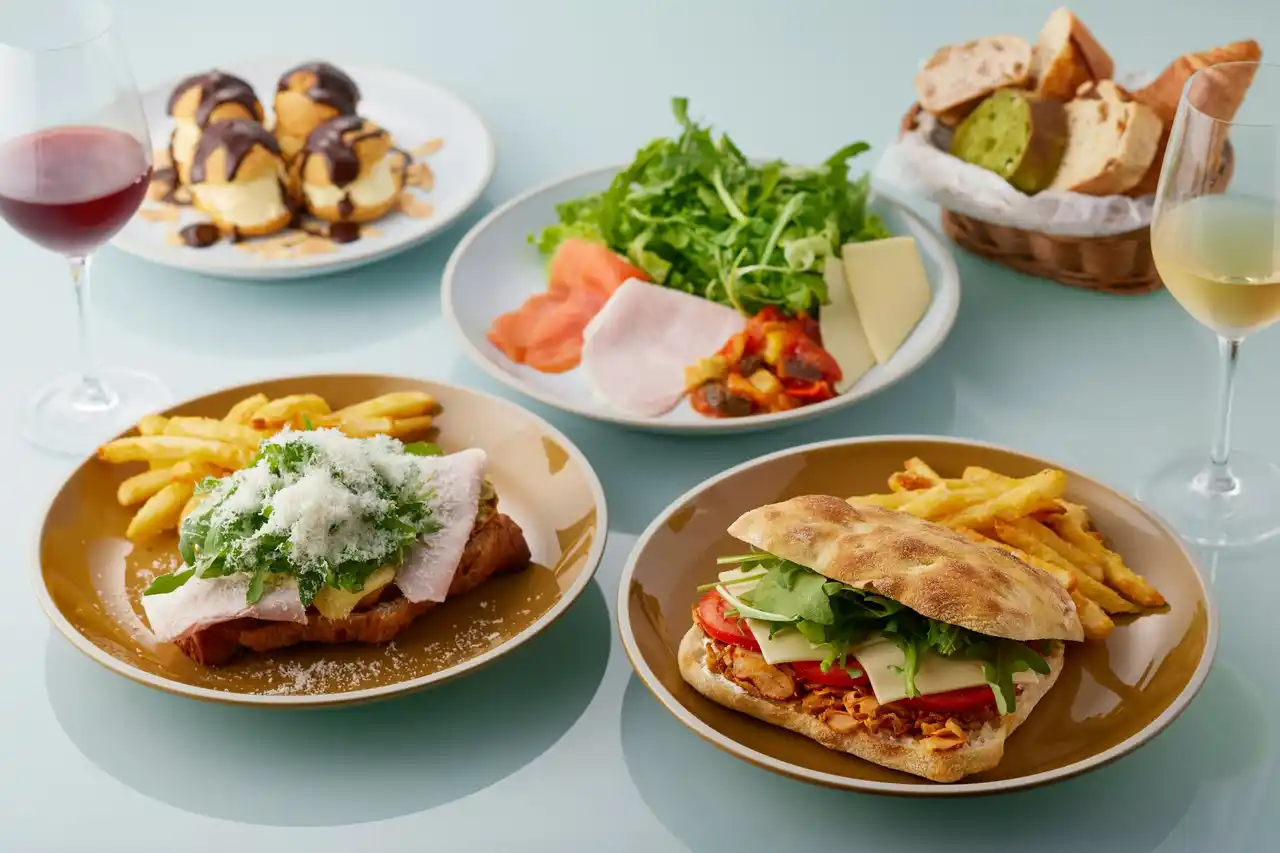 店内にはWi-Fi・コンセント完備のカフェスペースを39席併設し、ランチおよびアペロタイムにふさわしいパンを楽しめる食体験をご提供致します。メニューは大阪・関西万博のフランスパビリオン併設ビストロのメニュー考案をしたシェフが監修。 |