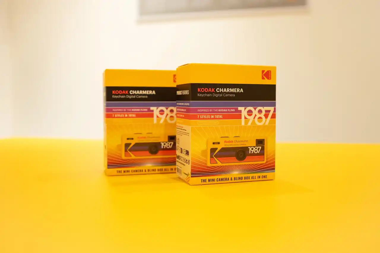 本POP UPストアのオープンを記念し、4月24日(金)より、Kodakのキーチェーン型デジタルカメラ「CHARMERA(チャーメラ)」を数量限定で販売いたします。オープン記念特典として、毎日先着10名様限定でご購入いただけます。本アイテムは、2025年秋の発売以降、SNSを中心に世界的な話題を集め、カメラファンのみならず海外からの問い合わせも相次ぐなど、国内外で高い関心を集めている注目のプロダクトです。手のひらサイズのコンパクトなデザインと、“持ち歩けるレトロ”を体現する仕様はファッションにも自然に溶け込み、Kodak Apparelが提案する「身につけて楽しむKodak」というスタイルを表現。カメラを単なるツールにとどまらず、ファッションの一部として楽しむ新たなライフスタイルを提案します。 |