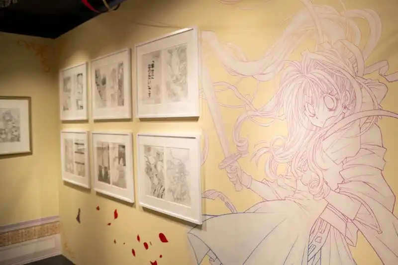 すでに後ろ髪を引かれる想いで歩みを進めると、作品に沿ったエリアが広がります。『神風怪盗ジャンヌ』『満月をさがして』『紳士同盟†』『桜姫華伝』『猫と私の金曜日』……美しいアナログ原稿を間近で堪能できる夢の空間が広がっています。 |