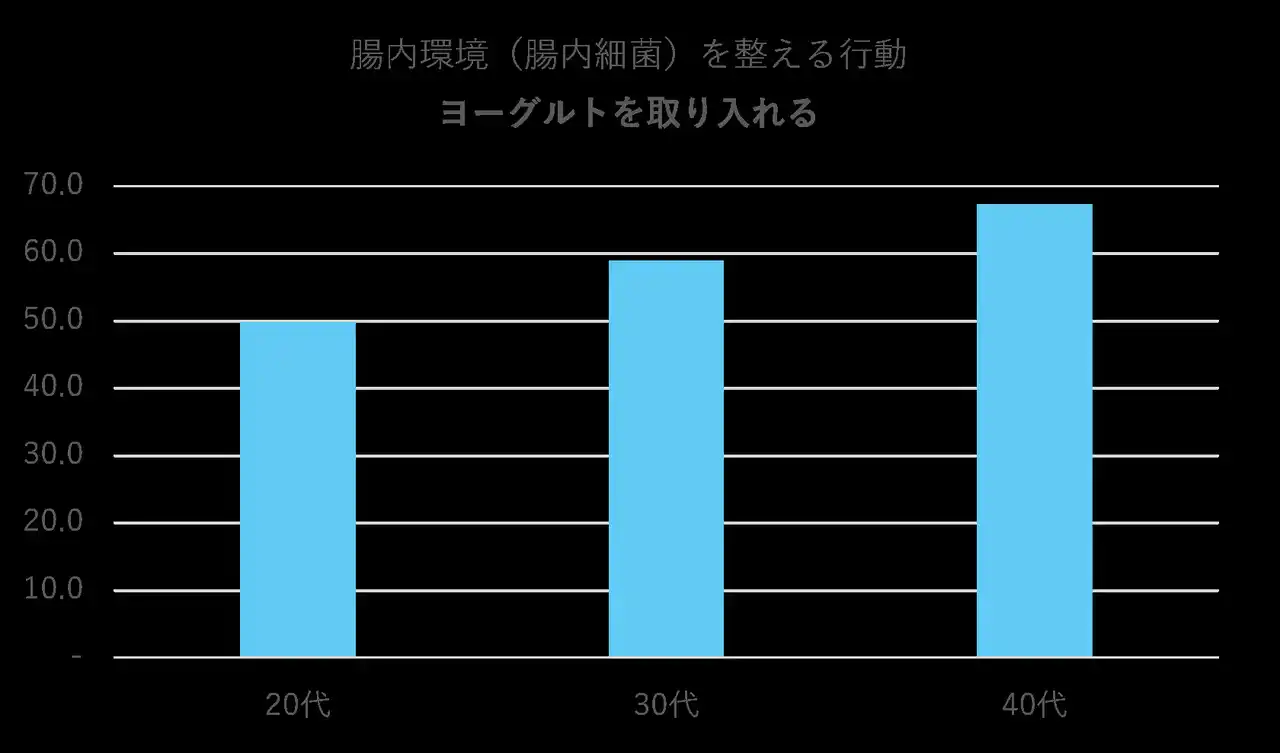 調査からは、ストレスやプレッシャーを抱える層ほど腸活意識が高く、「ヨーグルト」や乳酸菌、発酵食品が身近なセルフケア手段として受け止められていること、さらに「特定保健用食品(トクホ)」のヨーグルトに対する需要の高さが明らかになりました。 |