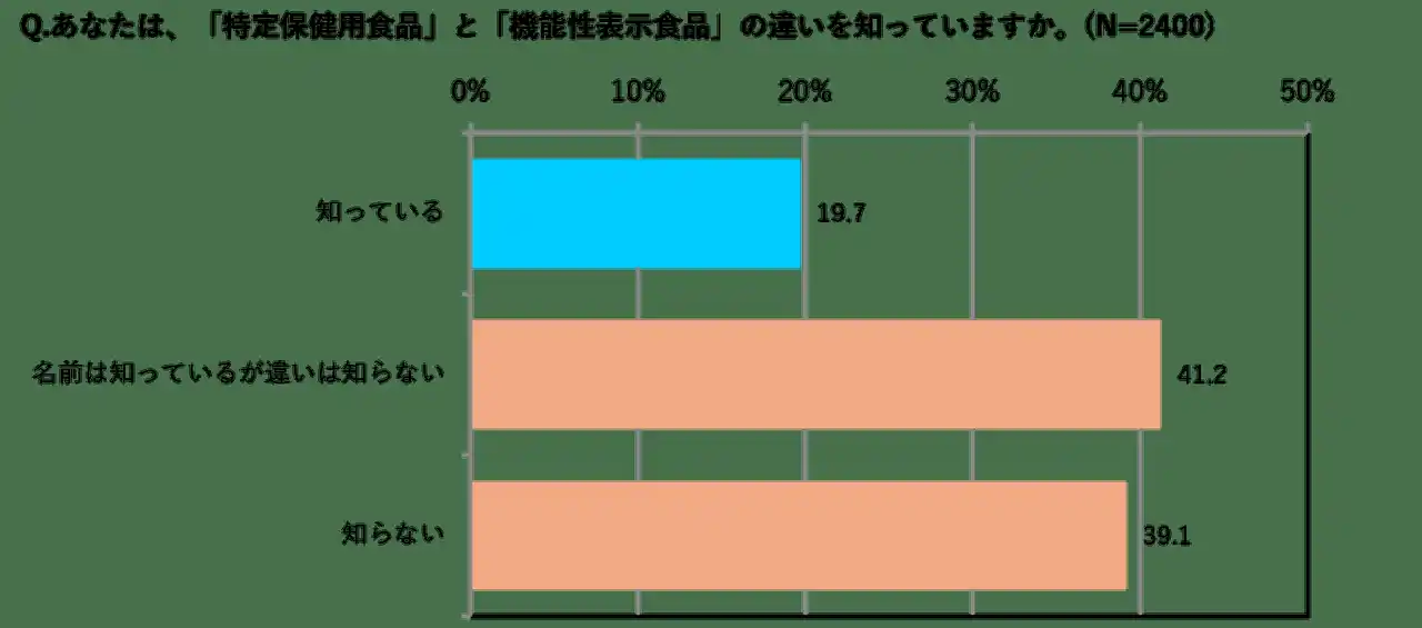 ・「特定保健用食品(トクホ)と機能性表示食品の違いを知っている人」は19.7%と2割にも満たないが、 |