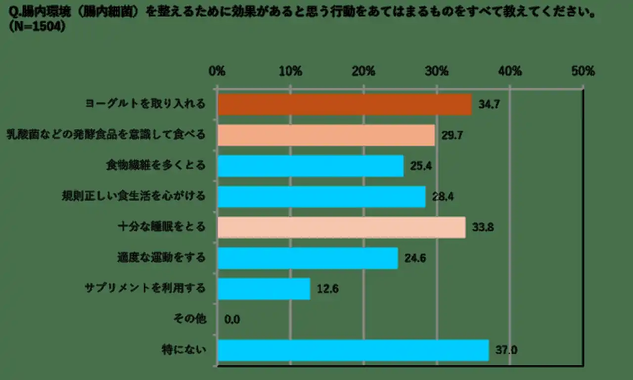 腸内環境(腸内細菌)を整えるために実践していることのナンバー1は「ヨーグルトを取り入れる」でした |