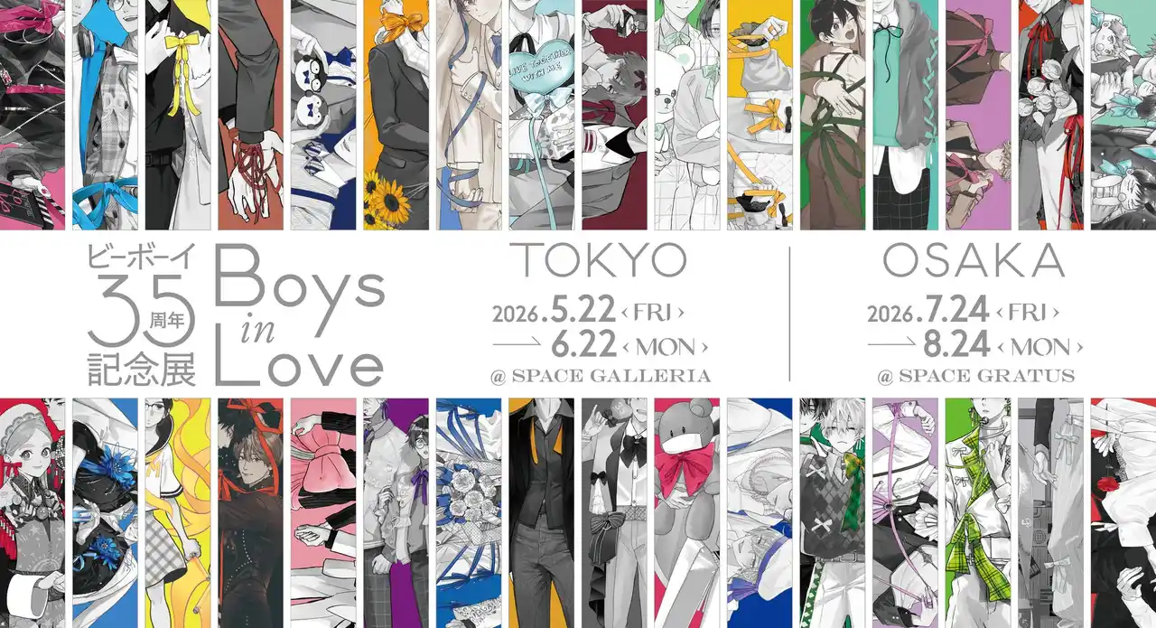「ビーボーイ」35周年を記念した特別展覧会「ビーボーイ35周年記念展 Boys in Love」がSpace Galleria(アニメイト池袋本店8階)にて2026年5月22日より開幕いたします。 |