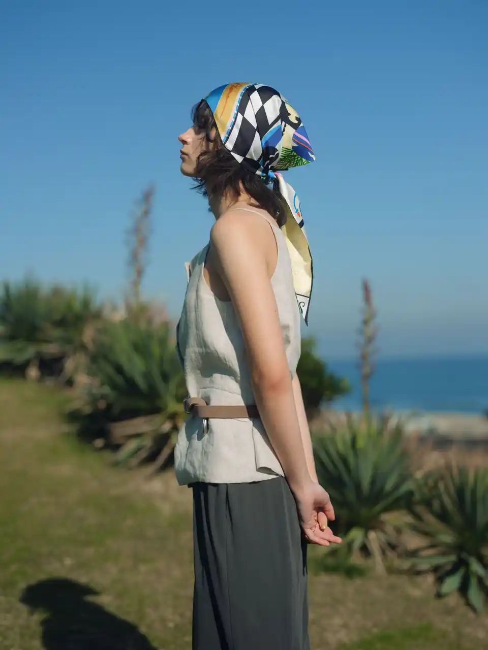 〈ダイヤ型スカーフ〉シャングリラ シルク100% ¥16,500(税込) |