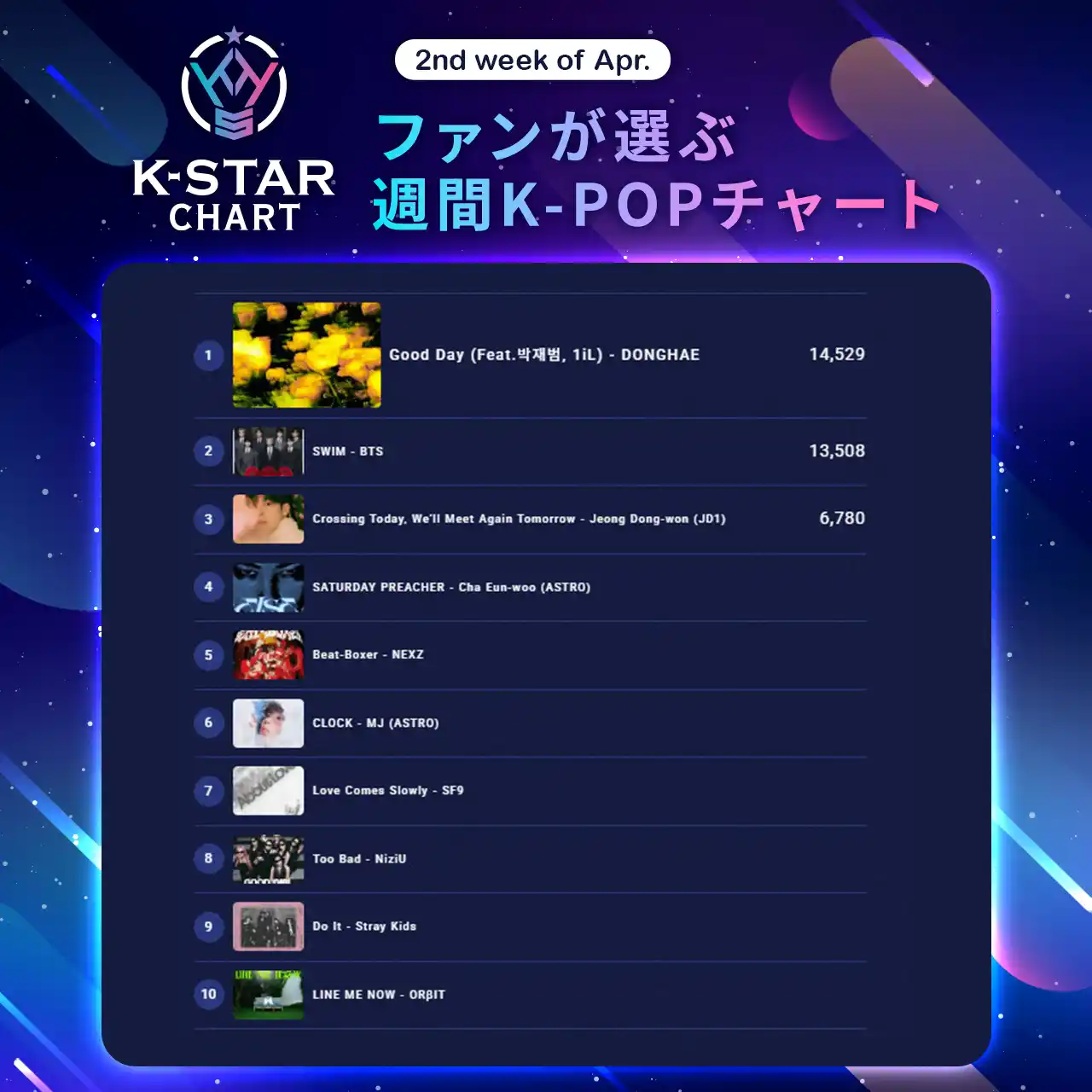 4月14日付『IDOL CHAMP』アプリ週間投票ランキング 1位~10位 |
