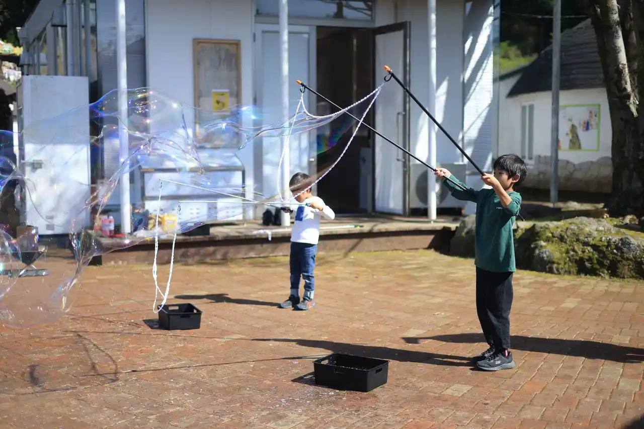 会場内では、子どもたちの「つくる楽しさ」と「できた!」という達成感を引き出す、多彩なワークショップを開催します。「とっきぃ塗り絵&缶バッジ」「焚火で作る焚きビー玉キーホルダー」制作では、自分だけのオリジナルデザインをその場で形にすることができ、世界にひとつだけの作品として持ち帰ることが可能です。小さなお子さまでも気軽に参加でき、初めての“ものづくり体験”にもぴったり。また「シャボン玉体験」では、さまざまな道具を使いながら大きなシャボン玉づくりに挑戦。目の前に広がる幻想的な光景は、見るだけでなく“自分でつくる楽しさ”も味わえる人気コンテンツです。 |