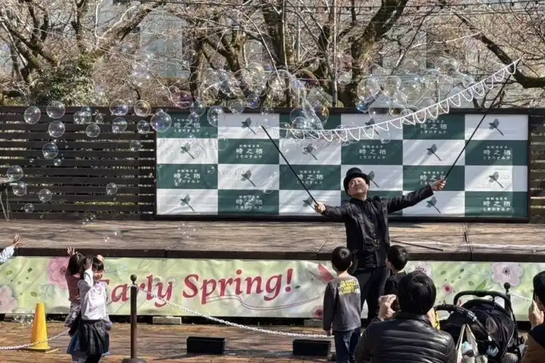 イベント期間中は、時之栖園内「さくらSQUARE」にて、世界的に活躍する振付師&ジャズダンス講師『SHOJIN』主宰のダンスコミュニティSHOJIN ENTERTAINMENT LABOによるダンスショーや、キッズダンスチームによるダンスステージが会場を盛り上げます。さらに、シャボン玉ショーなど小さなお子さまでも楽しめるステージもあり、参加する全員が楽しめる“遊び場”のような空間に。時之栖公式キャラクター「ときすみ とっきぃ」のグリーティングも開催し、お子様とのふれあいも楽しめます。 |
