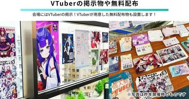VTuberの一部参加者でイベント空間に様々な掲示や無料配布物の設置を行います! |