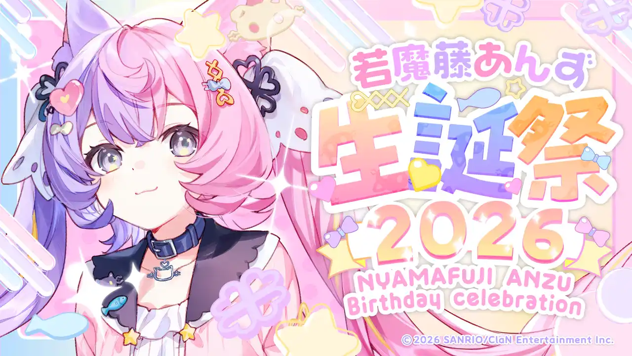 株式会社ClaN Entertainment(本社:東京都港区 代表取締役社長:大井 基行、以下ClaN)は、株式会社サンリオ(本社:東京都品川区)と共同で行うVTuberプロジェクト「にゃんたじあ!」に所属する「若魔藤あんず」が4月19日に誕生日を迎えたことを記念し、誕生日グッズの販売を行います。