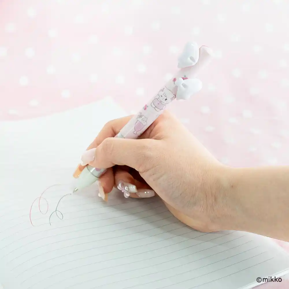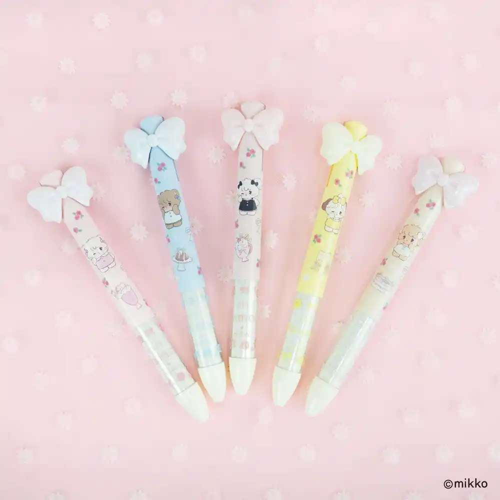 大きなリボンが特徴的な赤と黒の2色ボールペン。 |