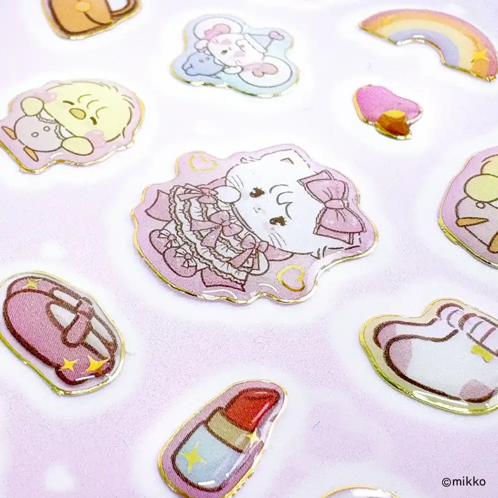 キラキラの箔押しがされた、ぷっくり膨らんだクリアシール。 |
