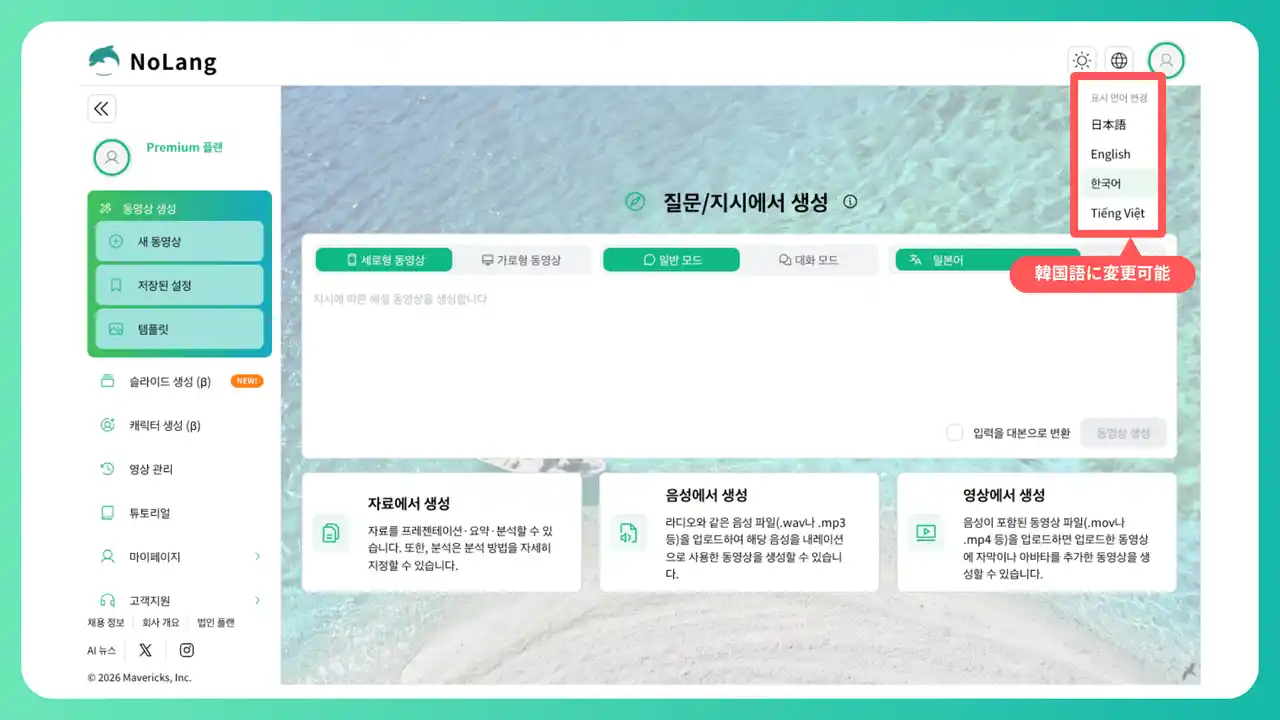 今回のアップデートにより、NoLangは日本語・英語・韓国語・ベトナム語の4言語体制へと進化しました。Mavericksは今後もグローバル展開戦略の一環として、対応言語の拡充を継続的に進めてまいります。 |