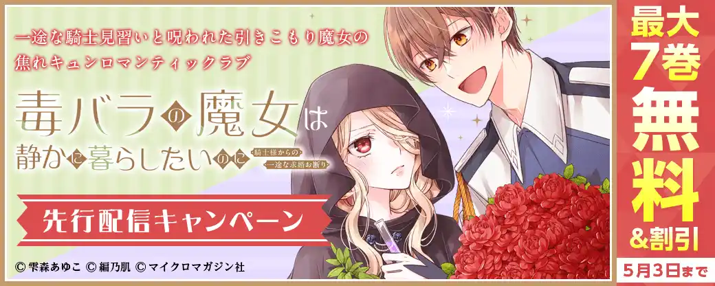 | 『毒バラの魔女は静かに暮らしたいのに ~騎士様からの一途な求婚お断り~』(漫画:雫森あゆこ 原作:編乃肌)の連載がスタートします! | |||||||||||